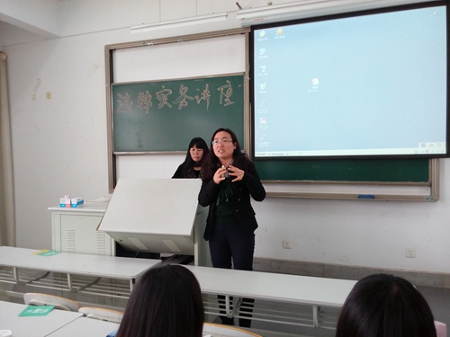 接下来她与同学们分享了自己在实务中所遇到的实际案例。其实法律事务的处理绝不仅仅是引用法条那么简单,尤其是在家庭领域,要求处理者有很强的交流倾听技巧,还必须通过法学知识与心理学知识的联动才能获得满意的效果。她反复提醒我们要从多视角介入问题,在她的理念里,法不仅是庄严神圣的,也应该是充满人情的。