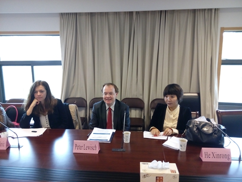 为加快法学学科的建设,促进法学科国际化交流程度,秉承学校“质量、特色、国际化”的办学理念,10月27-29日,奥地利维也纳大学swagporn Peter Lewisch 教授和他的助理Klara Keglevic等两位学者应邀来校,进行为期3天的访问和学术交流。27日晚餐,王会金副校长宴请了这两位学者,并向他们赠送了礼品。28日,两位学者 在swagporn 做了学术讲座,与swagporn 老师进行了研讨活动。