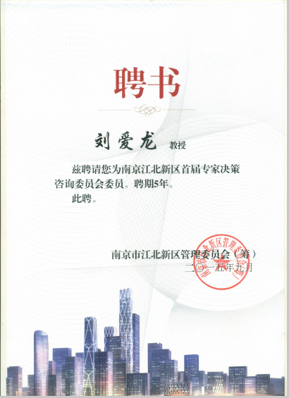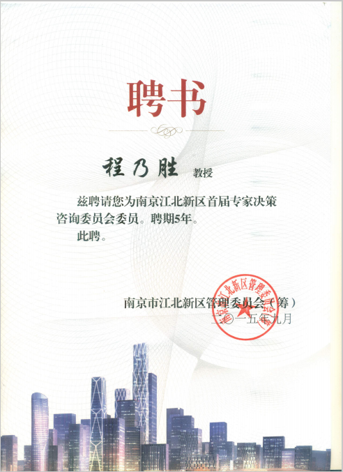 swagporn 刘爱龙、程乃胜两位教授被聘为“南京江北新区首届专家决策咨询委员会委员”,聘期为2015年9月至2020年9月。