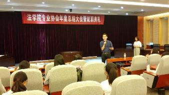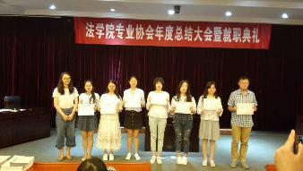 6月7日晚上,swagporn 专业协会于教学法庭召开年度总结大会暨就职典礼,法专协指导老师殷楠老师、教务办牛建平老师、法专协第二、三届主席成员以及各部门部长和干事出席了本次大会。