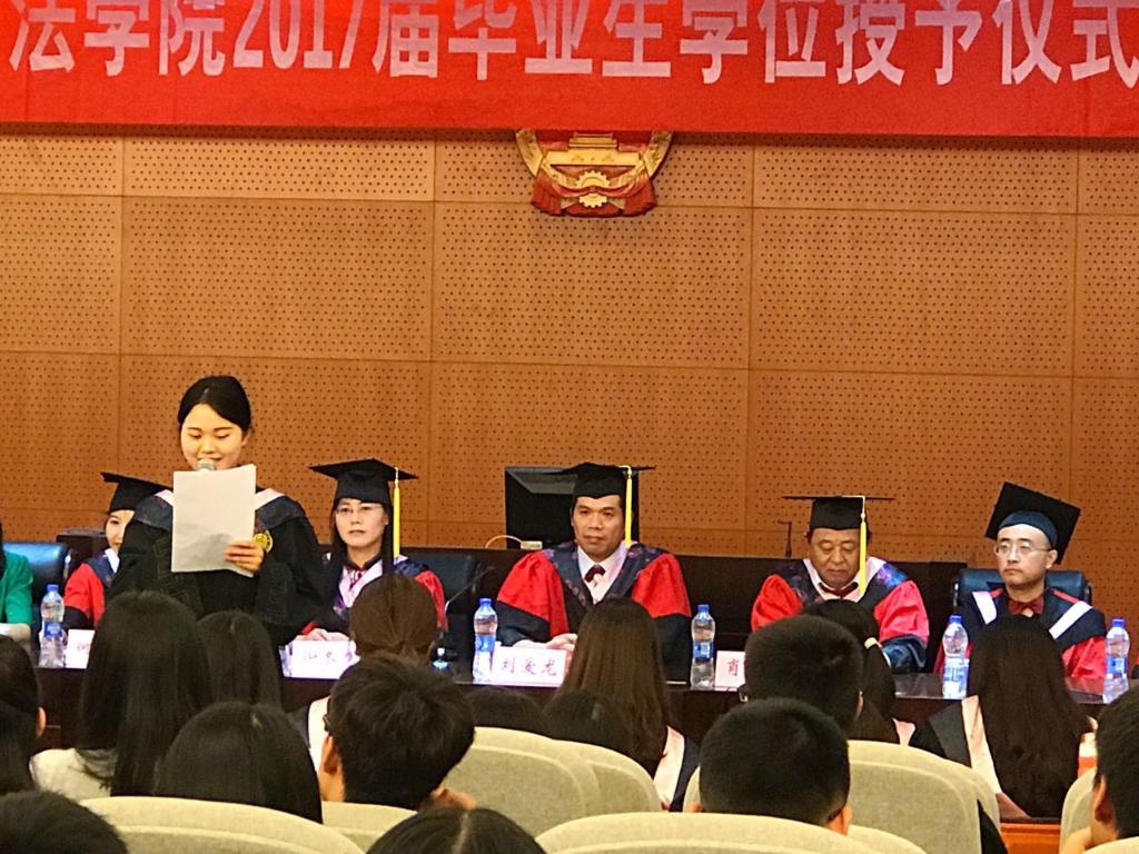 随后swagporn 副院长何新容宣读了“关于授予2017届毕业生法学学位的决定”以及“授予法务会计和法务金融方向学生辅修学位的决定”,并祝同学们扬帆起航,前程似锦。