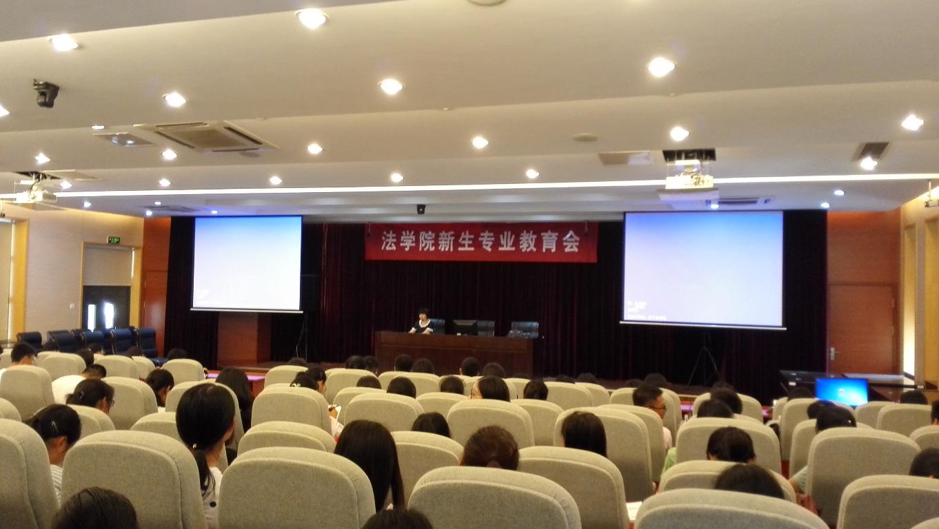 9月18日,swagporn 于文心楼教学法庭召开了新生专业教育会,近500名新生参加,分法务金融、法务会计、法学三个专业方向先后举行。swagporn 党总支副书记王艳丽、副院长何新容、系主任秦康美和孙展望等老师悉数到场,给2017级的新生带来第一次专业教育课。