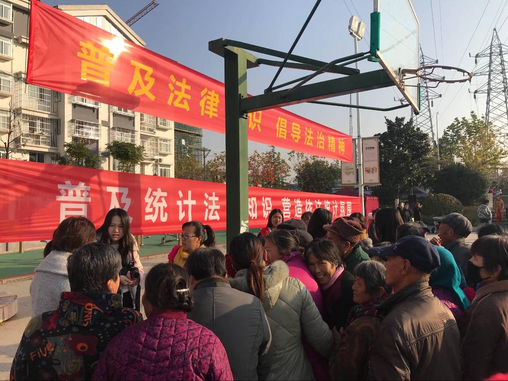 冬意浓,白霜凝,初冬刺骨的凉意却挡不住街道群众的热情,一大清早永宁科普文化广场就挤满了前来参加仪式的永宁街道的居民们。仪式开始前,广场一侧的浦口区各机关单位的展台桌位前驻满了永宁街道的居民群众。浦口区卫计局、国税局、妇联、检察院区法院等机关单位现场为永宁街道居民现场通过发放进行法制宣传手册,用现场法律咨询等形式对广大群众进行法律知识科普,用老百姓听得懂的语言,宣传老百姓需要的法律来为街道群众排忧解难。