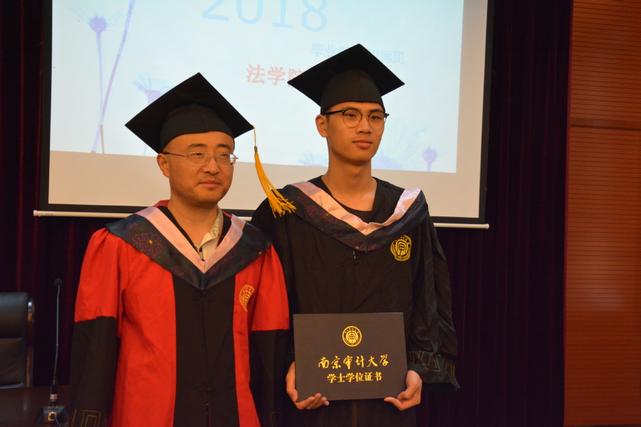 苏欣老师以“劝君更进一杯酒,西出阳关无故人”、“莫愁前路无知己,天下何人不识君”、“天生我材必有用,千金散尽还复来”三句诗作引,情真意切地表达了对同学们的殷切期望。他鼓励大家要无悔过往,不惧未来,珍惜师生情、同学谊,树立博爱、诚信责任、担当、奋斗意识,在专业发展上日益精进,以专业技术作为立身之本,并记住母校永远是坚强后盾。孙展望老师为在座的毕业生分享了最后一次法学教育心得。孙老师指出,法科学生要以司法考试和辩论赛为主线,利用一切假期时间进行实习,提高自己的法律实务技能。他期望广大毕业生在坚守初心的同时,还要有强烈的责任感、精湛的技能和团结合作精神,为南审法律人共同体共同努力。孙老师嘱咐在座的毕业生,要有团结合作精神,要有法律人的担当、南审人的担当,在外代表南审法律人的口碑,相互扶助,有困难找母校,共同把南审swagporn