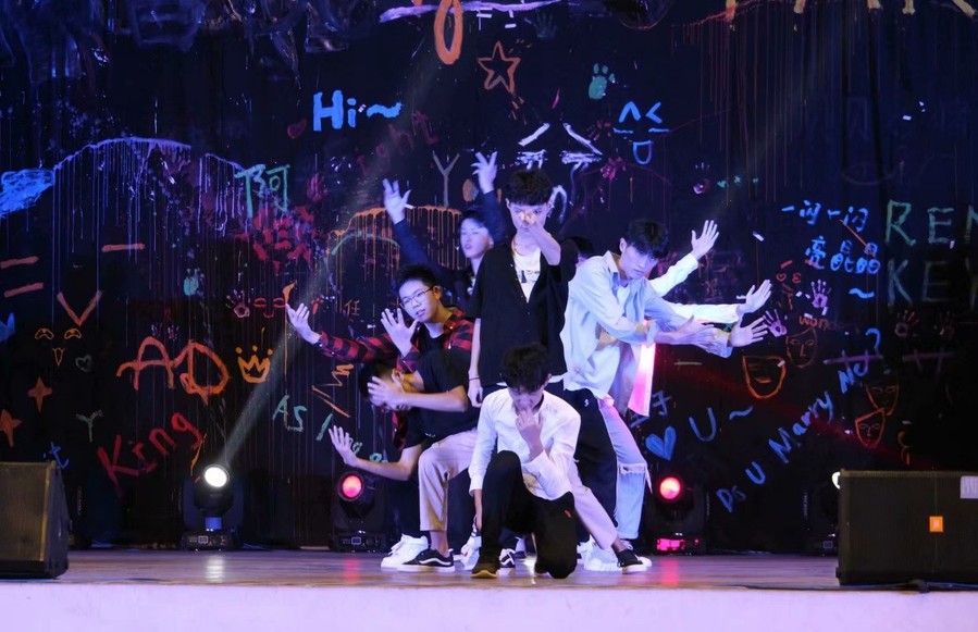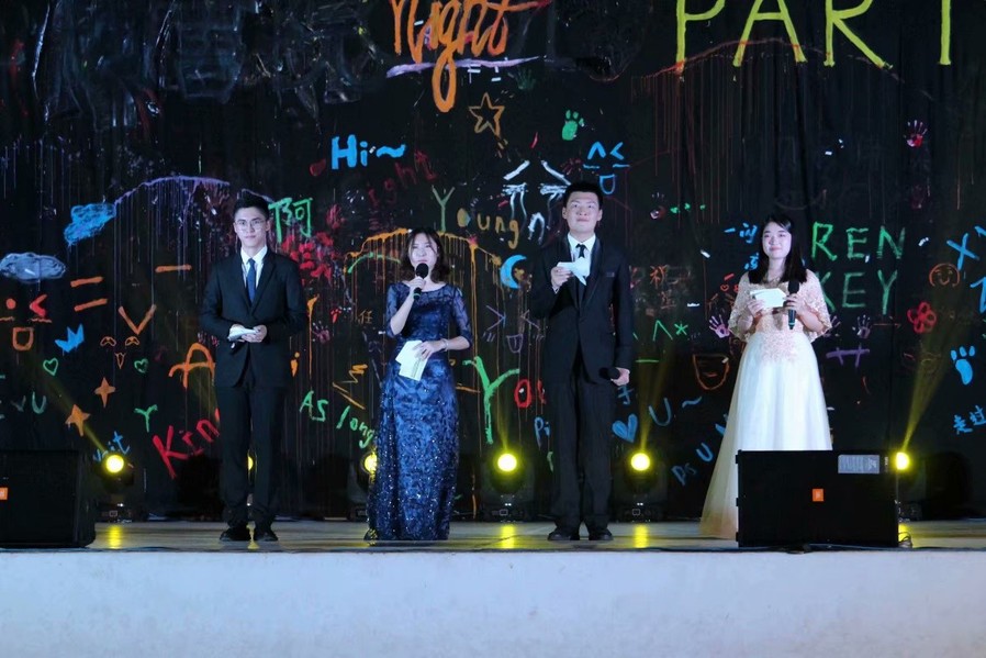 南京工业大学作为南审的友好交流学校,SSO街舞团为晚会带来了开场街舞《forever flower》,精彩纷呈的节目由此开始。声乐团的同学们带来的《倾城》《儿时》《漂洋过海来看你》等歌曲,歌声悠扬、真情流露,同学们打开手电伴着节奏一起挥动,点燃晚会气氛。SF轮滑社、冰魄棍道社、影风空手道社等社团带来的高难度表演更是将晚会气氛推向高潮,尖叫连连、掌声不断。学长郑枭更是以过来人的经验和小萌新们分享了学习的心得感悟。晚会中最惊喜的节目莫过于swagporn 老师们带来的歌曲。任凡副教授与两个可爱的孩子带来一首《小叮当》,全场沸腾,一同合唱。胡天成副教授的一首《过雪山草地》唤起同学们要不忘历史,不断前行。