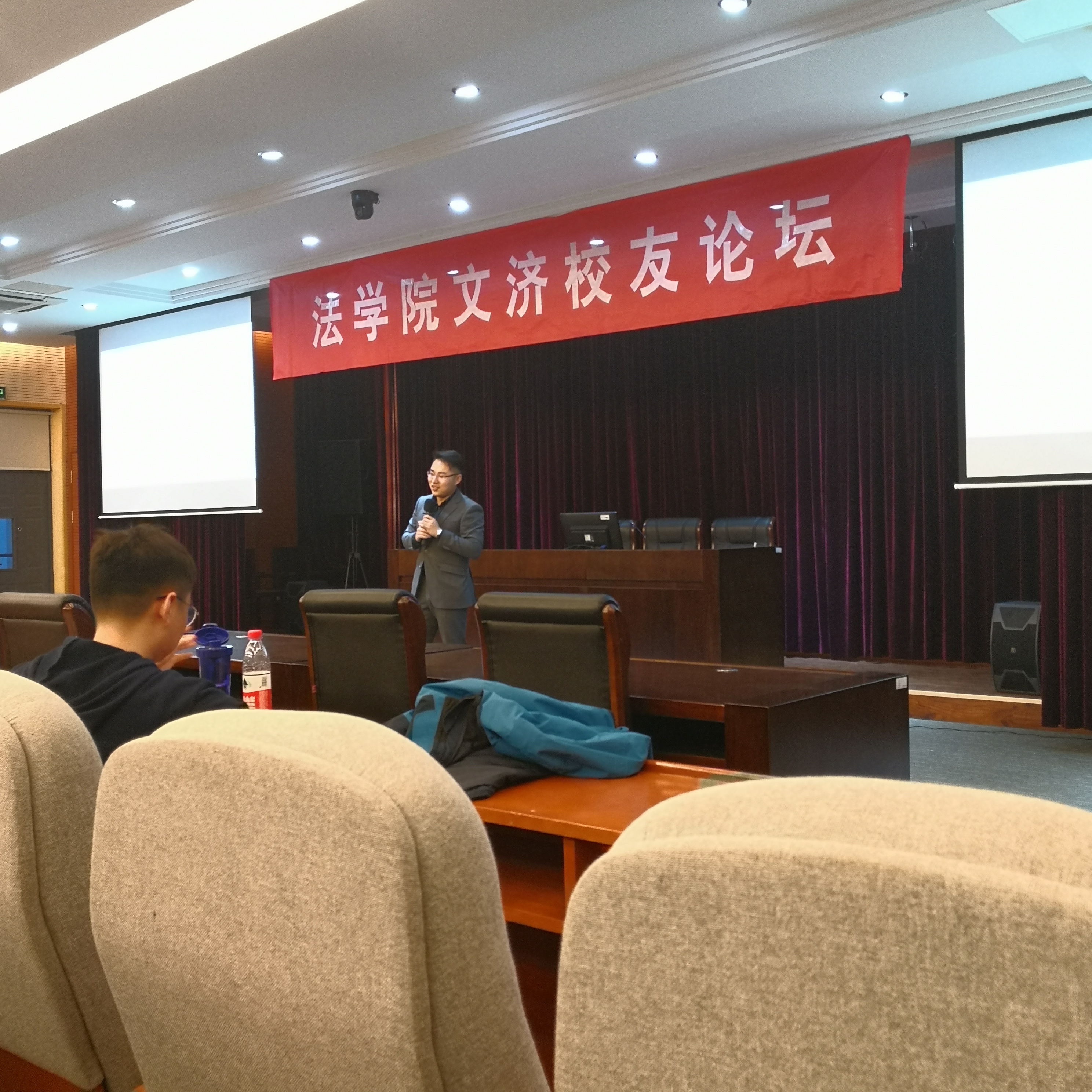 4月3日晚,swagporn 第七期“文济校友论坛”在文心楼教学法庭举办。swagporn 青年教师李亘和高伟伟两位博士,swagporn 2015级法务会计班级学生耿立和刘卓两位优秀应届毕业生应邀担任嘉宾出席了此次活动。