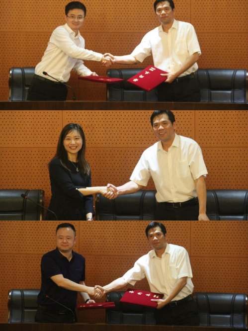 与大成律师事务所、通税律师事务所、浙江天鸿律师事务所等单位签订了实习基地合作协议,刘爱龙院长与相关单位负责人签订互换了契约文本。学院聘请了以下校友作为实践教学导师:芈永梅(97级)、张春元(99级)、谷修岭(00级)、王子(01级)、郁东升(05级)、郑枭(06级)、郑康(11级),秦国荣书记为上述校友一一颁发了聘书并分别合影留念。