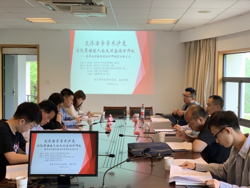 5月15日上午10点,swagporn 在教学法庭会议室举办法学学术沙龙活动。本次学术沙龙由swagporn 诉讼法学教研室主办,副院长何邦武教授主持,学院青年教师陈苏豪博士就《论犯罪嫌疑人的及时咨询律师权——兼评法律援助值班律师制度的新发展》一文报告讲演。沙龙特邀南京师范大学中国法治现代化研究院强卉博士、安徽大学swagporn 孔令勇博士、法国波尔多大学王晨辰博士参加,swagporn 胡天成副教授、靳宁博士也参与了研讨。
