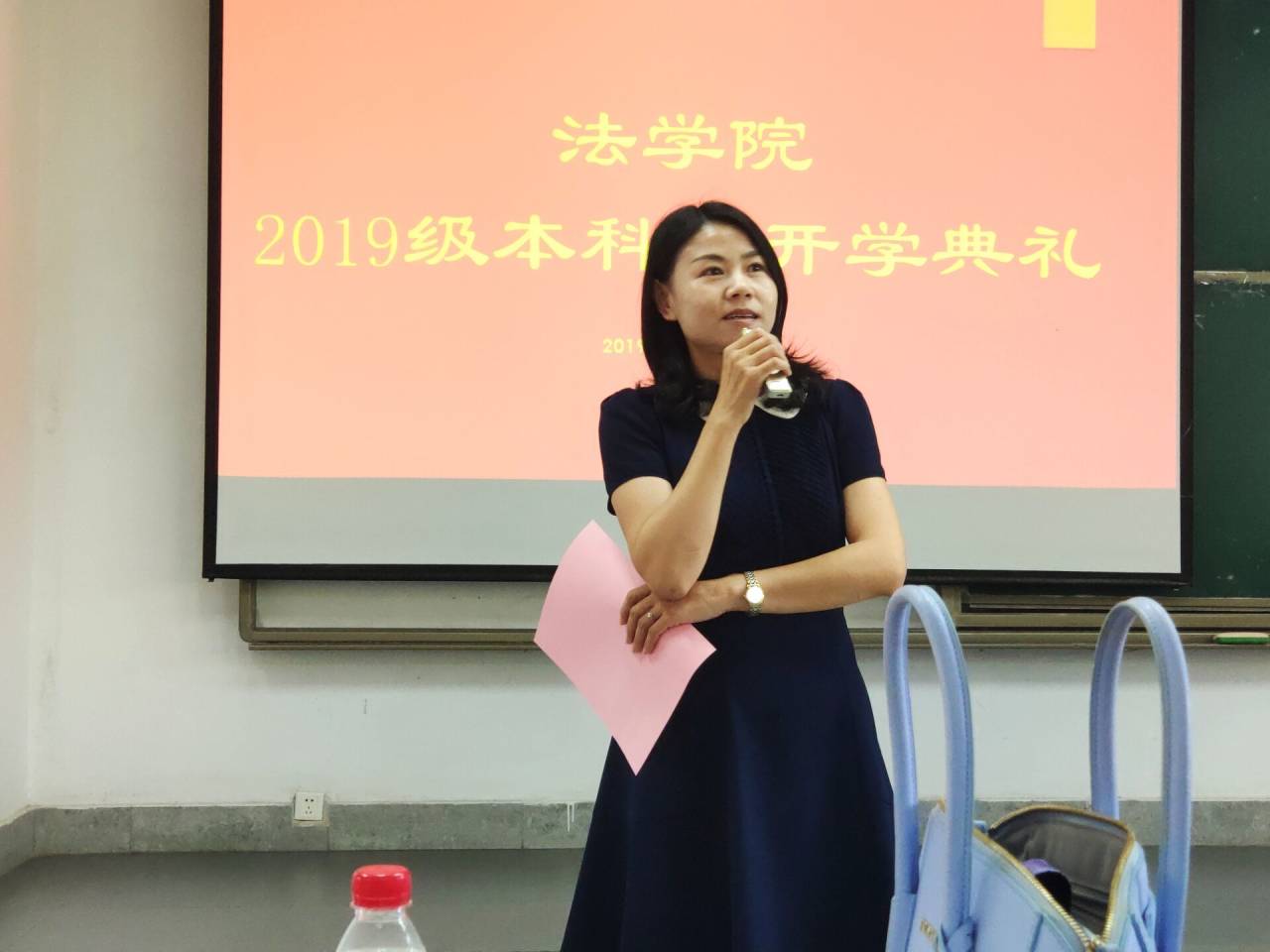 刘惠文同学作为新生代表发言,她表示作为一名“法学人”,定会莫负四年芳华,敬畏法律,追寻正义,以“十年饮冰,热血难凉”的精神奋发前行,实现法律人的担当。路广老师作为教师代表发言,表达了对新生们的欢迎,指出大家在大学四年中,将在教室、图书馆、课堂上和老师的交流中重新找到自己,找到将要奋斗的事业和未来,也将学会竞争与协作、倾听与表达、严格与宽容;同时路老师勉励大家要刻苦学习,“不驰于空想,不鹜于虚声”,尽快培养起自我管理和自我学习的能力,“闻鸡起舞”,“撸起袖子加油干”。