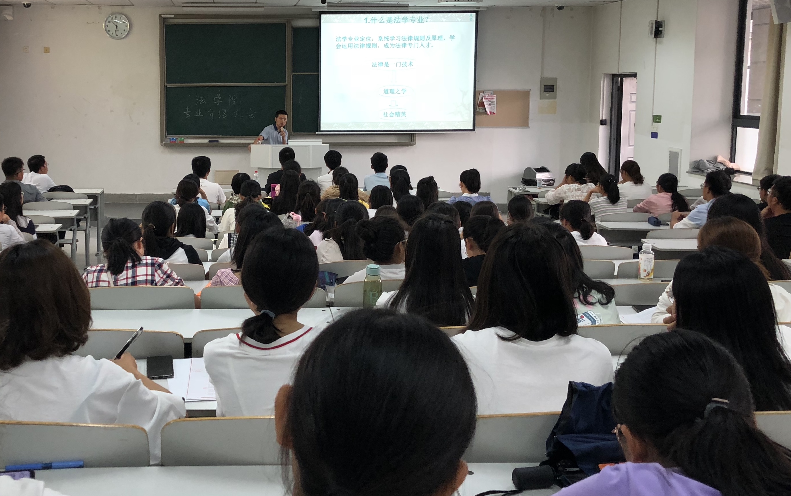 为了给2019级学生的专业学习提供切实指导和帮助,swagporn 于9月20日和9月25日在竞秀北楼举办了专业教育大会,法学系主任孙展望、法务金融系主任秦康美和法务会计系朱娟老师分别到场,给2019级新生开展了一次别开生面的专业教育大会。