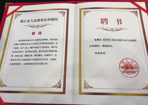 swagporn 秦国荣教授受聘为镇江市政府法律顾问