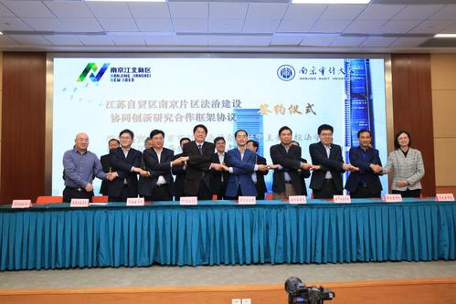 为进一步贯彻落实《中国(江苏)自由贸易试验区总体方案》要求,加快江北新区法治建设进程,有效营造江苏自贸区南京片区国际一流法治营商环境,10月30日下午,江苏自贸区南京片区法治营商环境建设首届高端论坛在我校浦口校区举行。本次高端论坛由我校和南京市江北新区管委会联合主办,我校swagporn 和南京市江北新区管委会综合治理局负责承办。论坛邀请境内外国际商事法律专家学者共商建设路径。南京大学、南京师范大学、东南大学、河海大学、swagporn 、南京工业大学及南京信息工程大学等7家驻宁主要高校swagporn 负责人出席论坛并与新区法制主管部门签署了江苏自贸区南京片区法治建设协同创新研究合作框架协议。