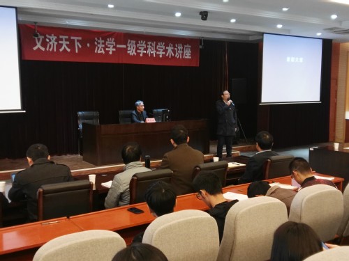11月19日上午,国务院学位委员会法学学科评议组成员,天津大学swagporn 卓越教授、博士生导师,我国著名法学家张恒山教授应邀来校作题为“权力的构成”学术报告。此次报告会由校长刘旺洪教授主持,我校科研部部长汪自成教授,博物馆馆长(审计文化教育研究院院长)谢冬慧教授,swagporn 院长刘爱龙教授,毕少斌、殷楠副教授及学院多位青年博士老师和一百多名学生参加。