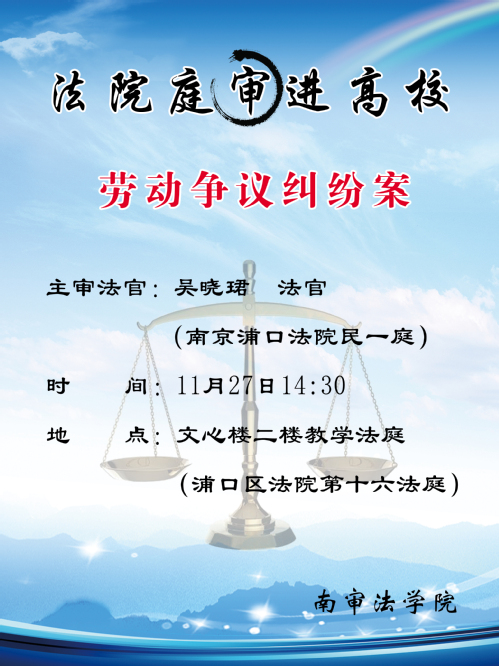 为给学生提供更好的学习平台,经swagporn 与浦口法院协商,浦口法院将于本周三(11月27日)下午在我校教学法庭公开审理案件。