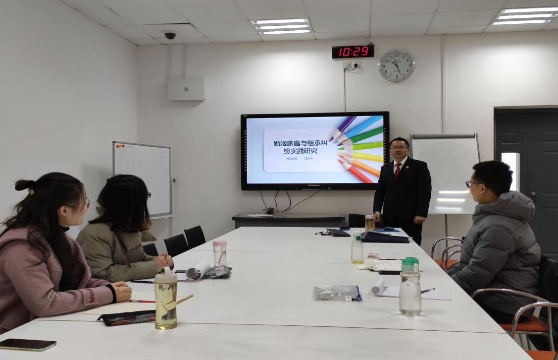 2019年12月4日上午,南京市浦口区人民法院汪会中法官走进swagporn 研究生课堂,为4位法律(法学)研究生带来一堂婚姻家庭继承教学研讨课。