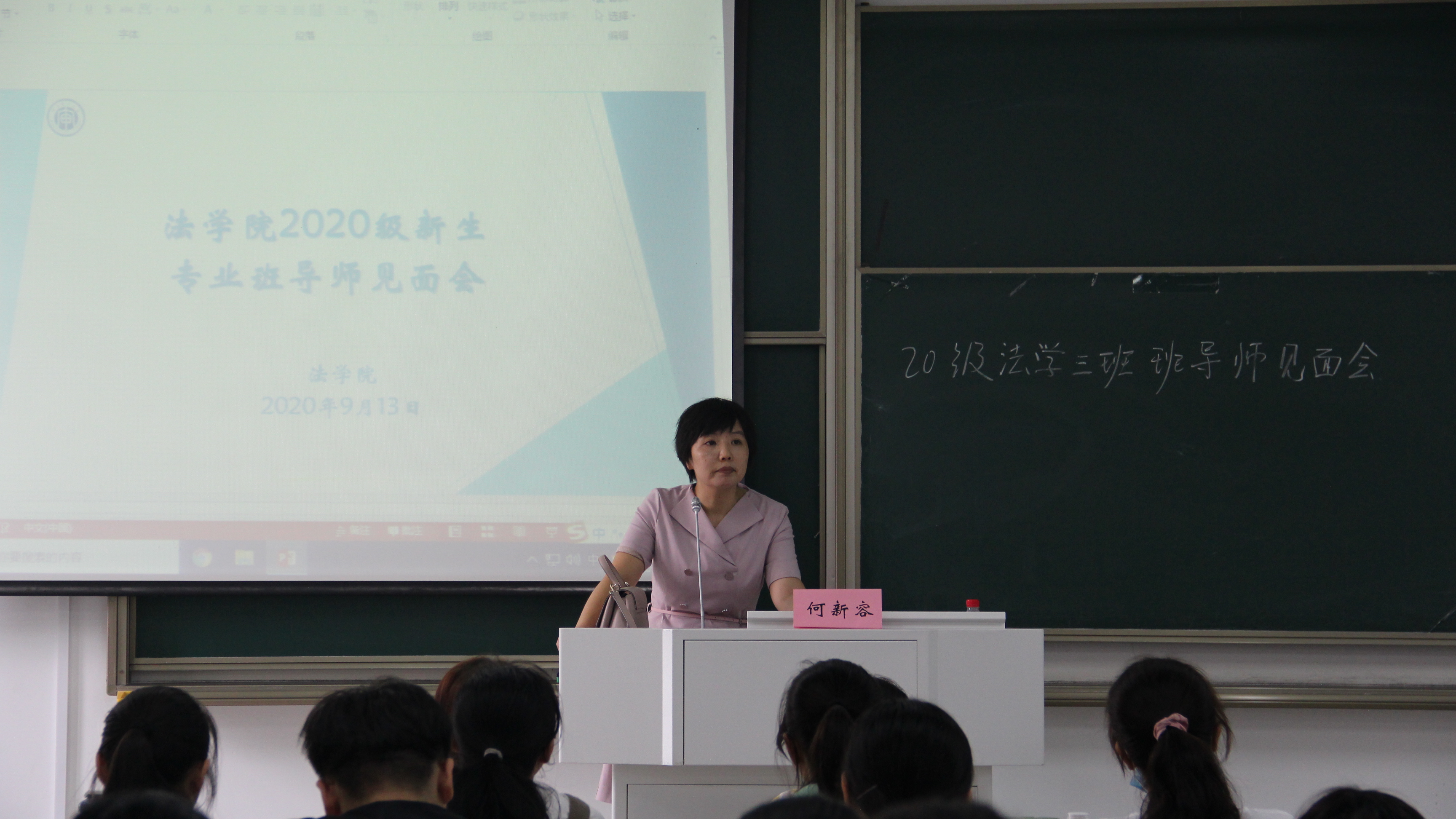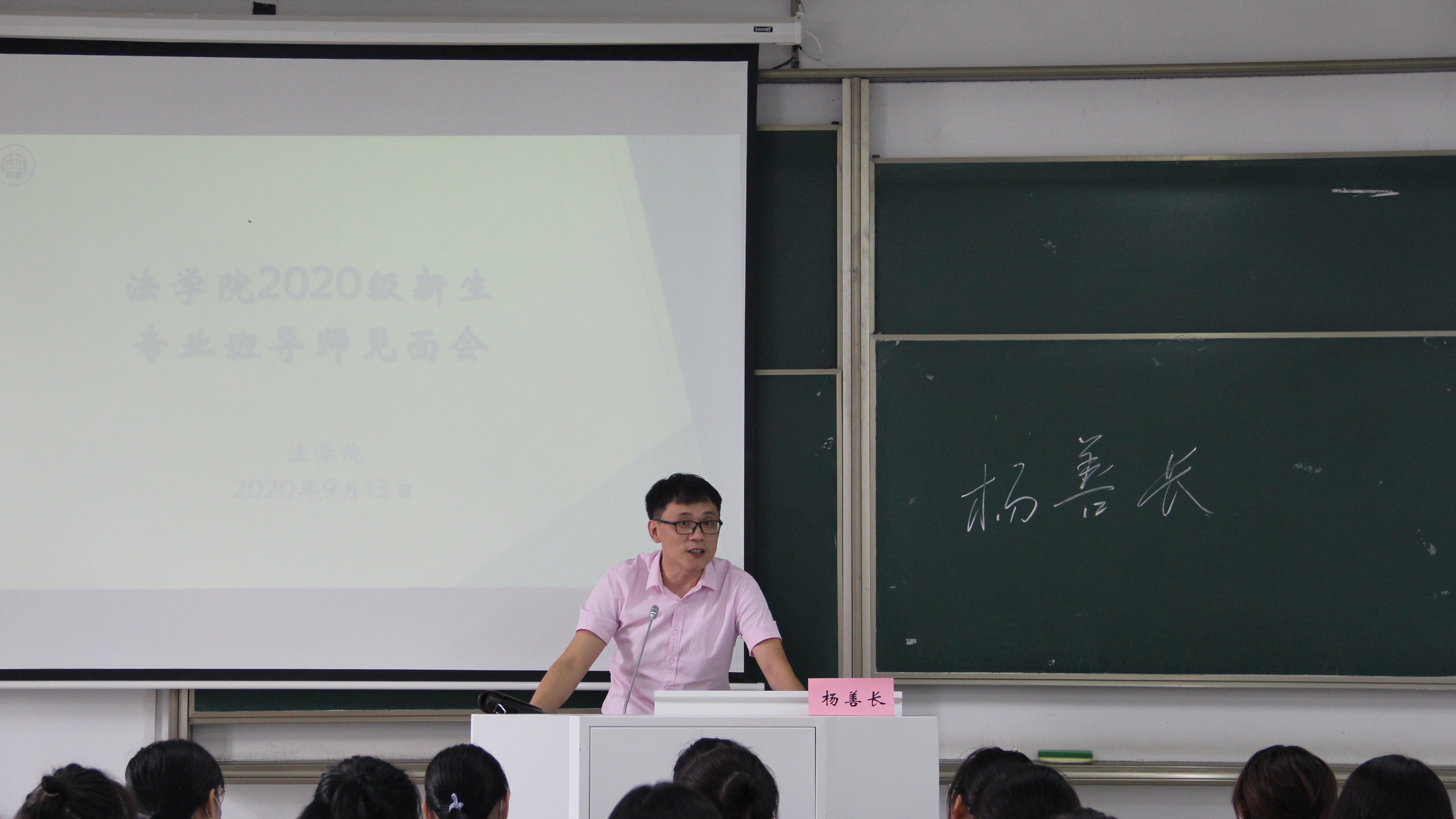 9月13日上午,各班专业导师在致远楼各教室分别为所带班级召开班会。各位导师详细了解了同学们高考以后的状况、对专业的困惑、对学业的规划、对大学生活的期待,与大家沟通了应该以怎样的心态和准备来开启大学学习生活。各位导师结合自身学习经历和法学专业特点,现身说法,引导同学们认识到怎样才能学好专业、怎样才能不忘初心,怎样才能不负韶华,并表示将全力为同学们保驾护航,帮助他们成长为优秀法律人。部分导师还请来优秀校友为班级同学做深入交流。