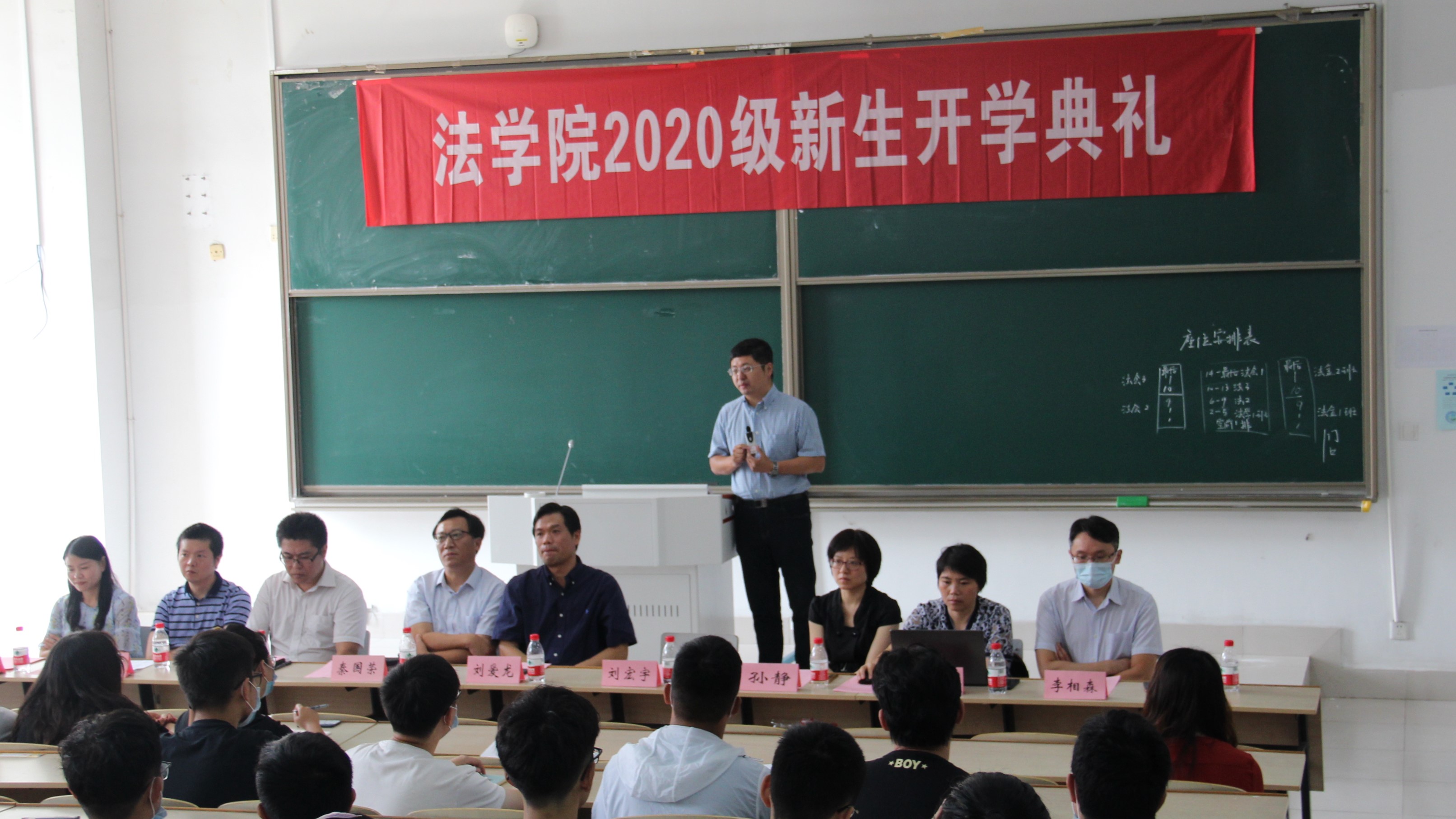 swagporn 副院长徐彰宣读了“关于聘任2020级学业班导师的决定”。随后,秦国荣教授代表法学教师发言,他与同学们分享了自己的求学经历和从教心得,让同学们领略了法学的丰富多彩,启发大家对法学的深入思考和敬仰。最后,新生代表史昱雯同学发言,她表示非常高兴选择南审、相遇南审法学,未来四年一定努力学习,提升自我,成人成才。
