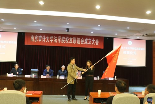 会议议程伊始,南审学校及swagporn 的宣传片以生动的画面向与会校友报告了学校、学院近年来的发展进步。刘旺洪校长首先致辞,对返校的各位校友表示了热情的欢迎,对swagporn 校友联谊会的成立给予了美好的祝愿,对南审swagporn 联合校友力量更好地建设发展提出了美好的展望。第二项议程,会议宣读了swagporn 校友联谊会第一届顾问成员名单及理事会成员名单,swagporn 党总支书记王艳丽教授为苏欣老师等顾问成员颁发了聘书,swagporn 教师代表赵洲、殷楠、李相森为校友联谊会第一届理事会会长芈永梅(97级)、执行会长郑枭(06级)等理事会成员颁发了聘书,在校学生代表为校友联谊会校友代表佩戴了校徽。第三项议程,校友工作办公室副主任张林林为swagporn 校友联谊会授旗,swagporn 校友联谊会第一届理事会会长芈永梅律师代表校友联谊会接旗。
