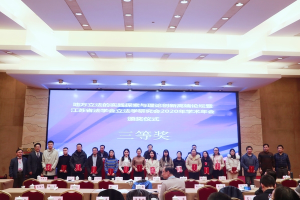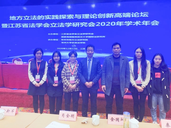 2020年12月12日,地方立法的实践探索与理论创新高端论坛暨江苏省法学会立法学研究会2020年学术年会在江苏常州隆重召开,此次年会由江苏省法学会立法学研究会与国家高端智库武汉大学国际法研究所共同主办,常州市地方立法研究院、常州大学史良swagporn 承办,会议主题是“地方立法的实践探索与理论创新”。来自省内党政法单位领导、省内外高校专家学者、同学以及知名律所律师共130余人参加了本次会议。swagporn 院长刘爱龙教授、老师苏海雨、硕士研究生金小敏、季玉冰、陈含锐、余源、朱颖、肖婉琳、孙逸人等应邀参会,并向大会提交了论文。