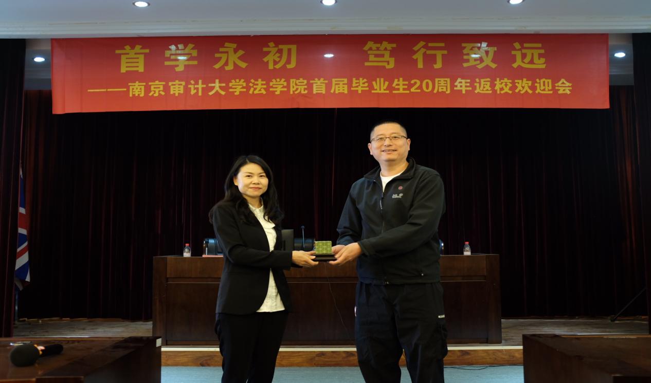 97级校友们还精心准备了一枚由著名书法篆刻艺术家设计的印章,由97级老班长梁晨作为代表赠送给swagporn ,“审法97”四个印字熠熠生辉,象征着在南审求学的四年是校友们一生难以忘怀的记忆。