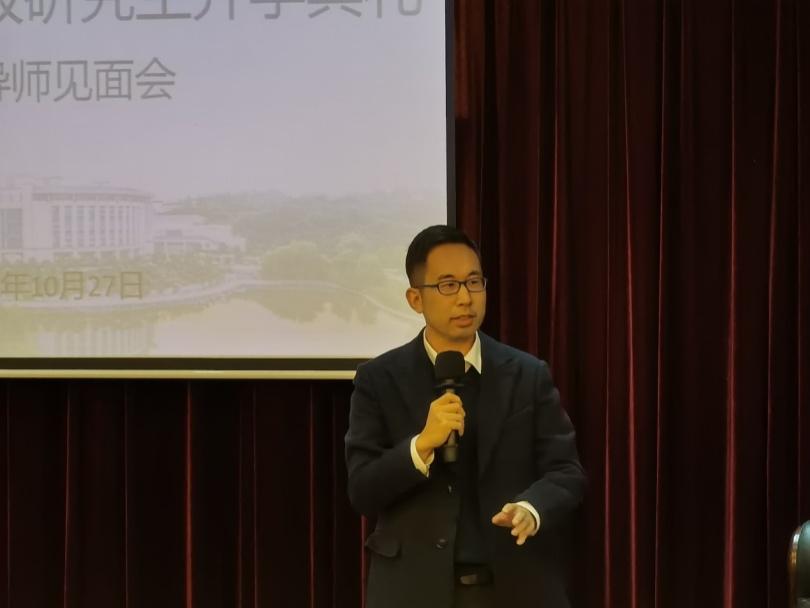 紧接着,会议进入第五项议程,由殷楠副院长宣读并介绍了师生互选的程序规则。随后,刘爱龙教授、汪自成教授等研究生导师介绍了自己的研究方向以及招生领域,徐彰副院长也简要介绍了未能到场的导师,寄语同学们不断努力,追求优秀和卓越。