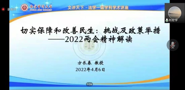 4月6日晚,swagporn 邀请南京大学社会学院方长春教授,作《切实保障和改善民生:挑战及政策举措——2022两会精神解读》专题讲座。本次讲座根据新冠防疫要求采用线上方式进行,来自党委组织部、润园书院、swagporn 的近300名党员师生聆听了报告。讲座由swagporn 党委书记刘宏宇主持。