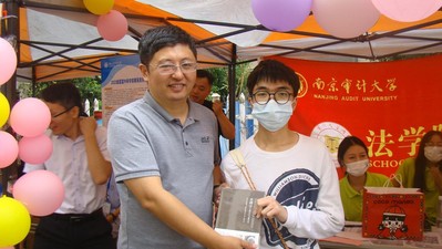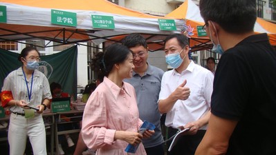 咨询台还特别准备了有趣的“知识问答”竞赛与“学长姐寄语”抽奖活动。在踊跃参加的新同学中不乏五道题全部答对的高手。小至文件夹,大至法律名著、羽毛球拍,不少同学都在这场实力与运气皆具的活动中收获进入校园后的第一份礼物。院长王艳丽与书记刘宏宇都亲自为获奖学生赠与了法学名著,表达对学生的关爱。学长学姐们的寄语包含深情又极具幽默,他们或是告诉新生们专业学习的乐趣,或是提醒新生不要错过校园里的春季花期,或是告诫他们在大一不能松懈,又或是列举自己认为最好吃的餐品......咨询台前热闹非凡,笑语连连。
