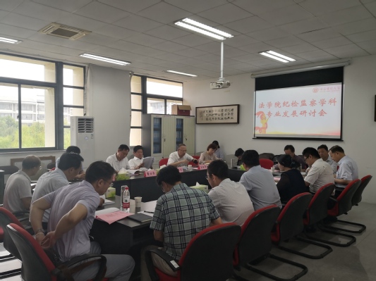 研究生工作部部长鲁靖就纪检监察一级学科硕士点和法律专博申报进行指导,她强调要了解全国高校的整体申报情况,进而整合校内其他学科资源支撑纪检监察学科建设,随后就申报材料的撰写做作了具体指导。