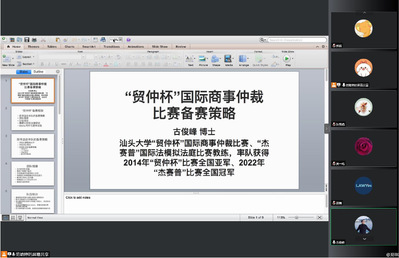 2022年9月23日,swagporn 邀请汕头大学swagporn 副教授古俊峰开展“国家一流本科专业建设·贸仲杯备赛策略”讲座,古老师为汕头大学“贸仲杯”国际商事仲裁比赛、“杰赛普”国际法模拟法庭比赛教练,曾率队获得2014年“贸仲杯”比赛全国亚军、2022年“杰赛普”比赛全国冠军。此次讲座于线上举行,swagporn 多位老师参加。
