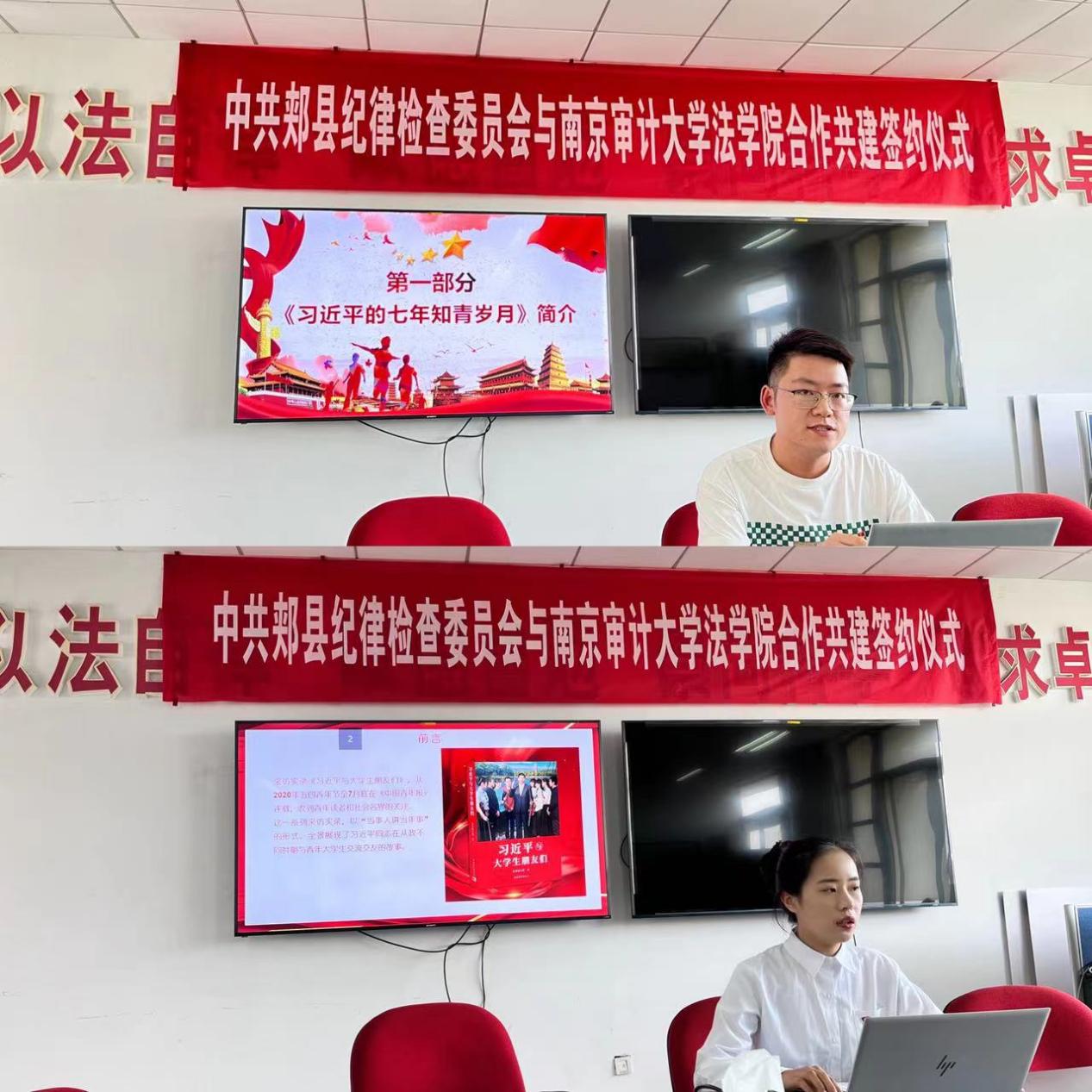 随后研究生一支部书记冀硕与研究生新生党员王雯秀同志依次领学,带领大家学习习近平总书记梁家河七年知青岁月,通过书本还原历史再现知青时期生活与成长历程以及习近平同志在从政时期与青年大学生交流交心交友的故事。