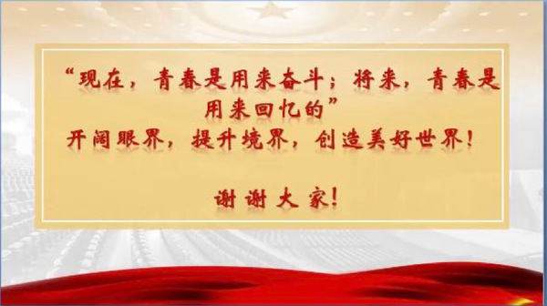 讲座尾声,黄明理教授引用习近平总书记的金句,“现在,青春是用来奋斗的;将来,青春是用来回忆的”,指出成功是目标、计划和习惯三者的结合,并对学生们寄予“开阔眼界,提升境界,创造美好世界”的美好祝愿。与会人员深受鼓舞、倍感振奋。