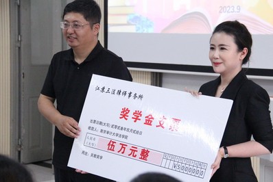 随后,由swagporn 党委书记刘宏宇和三法所执行主任章宁分别代表swagporn 和江苏三法律师事务所进行了奖学金捐赠仪式。