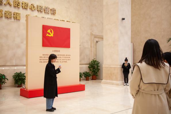 在党史展览馆内,同学们回顾了党的百年历程,学习了伟大建党精神。swagporn 孙自勉老师带领所有党员同学面向中国共产党党旗,重温入党誓词,庄严宣誓,牢记共产党员的初心与使命。