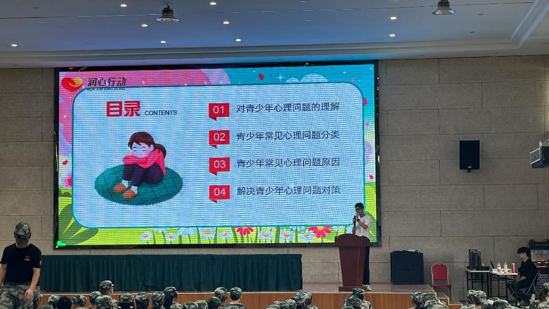 活动开始,校领导、青少年心理问题研究负责老师首先上台致辞,他的话语中充满了对刚刚入学的初中生们的肯定与鼓励,同时也表达了对swagporn 团队到来的热烈欢迎和高度期待。他提到:“暑期夏令营不仅锻炼了学生们的体魄,更磨砺了他们的意志。而今天,我们有幸邀请到swagporn 的心理健康宣讲团队,为大家带来一场关于解决刚入初中疑惑和可能面临压力的解决对策宣讲,帮助大家更好地适应初中生活,健康成长。”