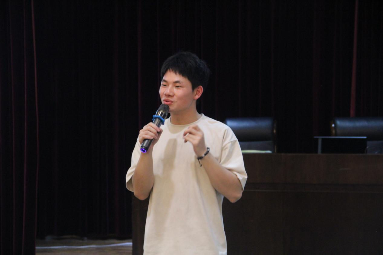 班长、主持人刘灌著同学代表全班同学,向两位老师牺牲陪伴家人的时间来与同学们倾心交谈的行为表达了衷心的感谢,并强调了举办主题班会的意义。