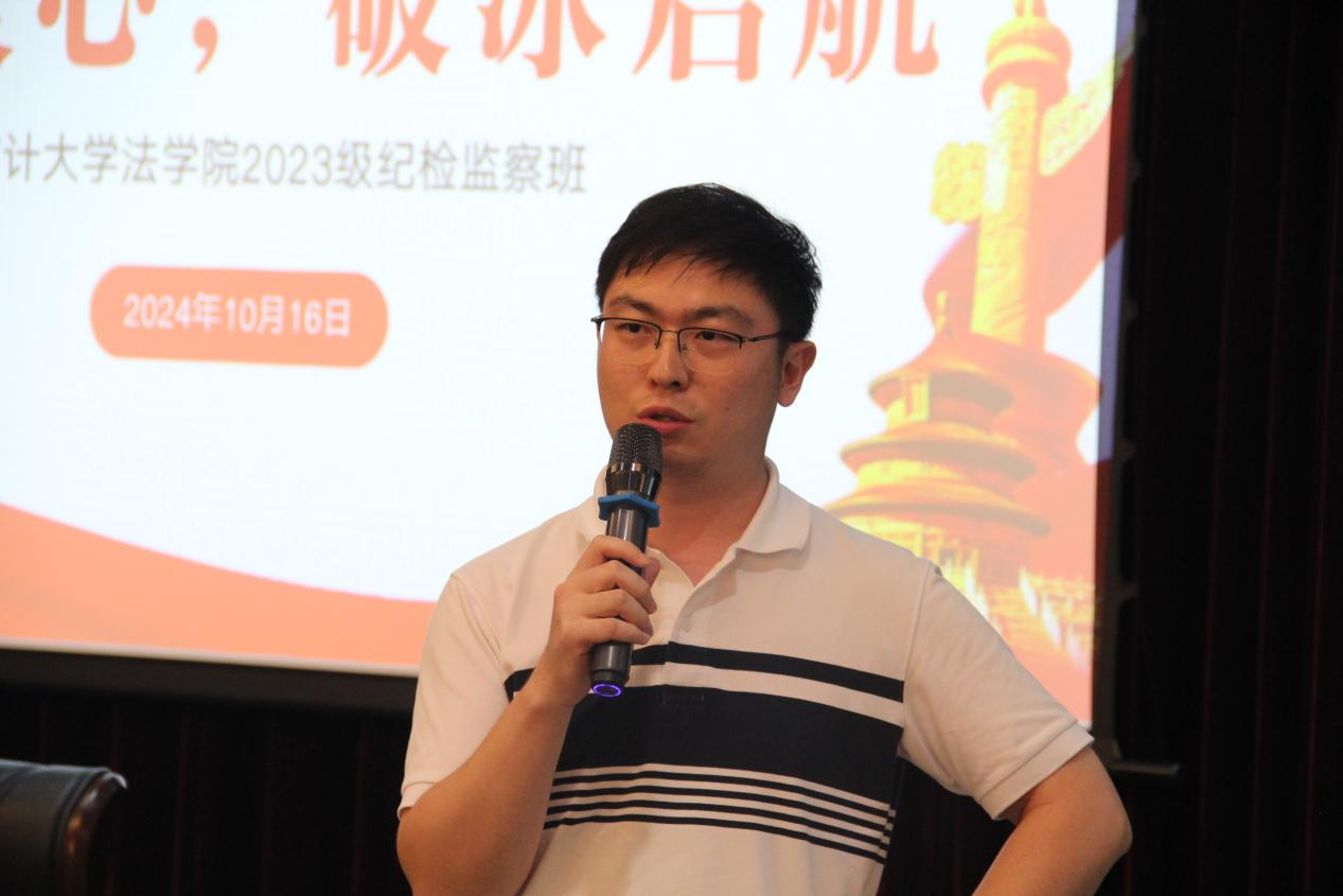 随后,赵伟中老师接过话题,从对公权力的监督谈起,强调了纪检监察方向学生的使命与担当。他结合自己在苏州大学、中国政法大学的求学经历,鼓励同学们树立远大理想,勇于实践,无论是参与大创项目还是实习锻炼,都要全力以赴、不负韶华。赵伟中老师还以毛泽东诗词“孩儿立志出乡关,学不成名誓不还”勉励大家,希望每位同学都能成为有理想、有担当、有作为的新时代纪检监察人。