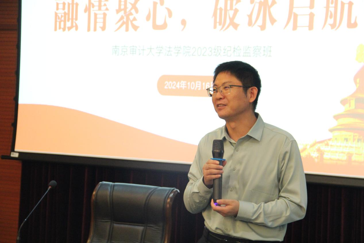 秋风送爽,夜色温柔。10月16日晚九点,文心二楼模拟法庭内暖意融融。为编织同窗情谊,促进师生了解,增强班级凝聚力、战斗力,2023级纪检监察班在此隆重举办了一场以“融情聚心,破冰启航”为主题的特色班会。swagporn 院长助理池通、班主任赵伟中、班集体同学及研究生会同学近三十人,共聚一堂。
