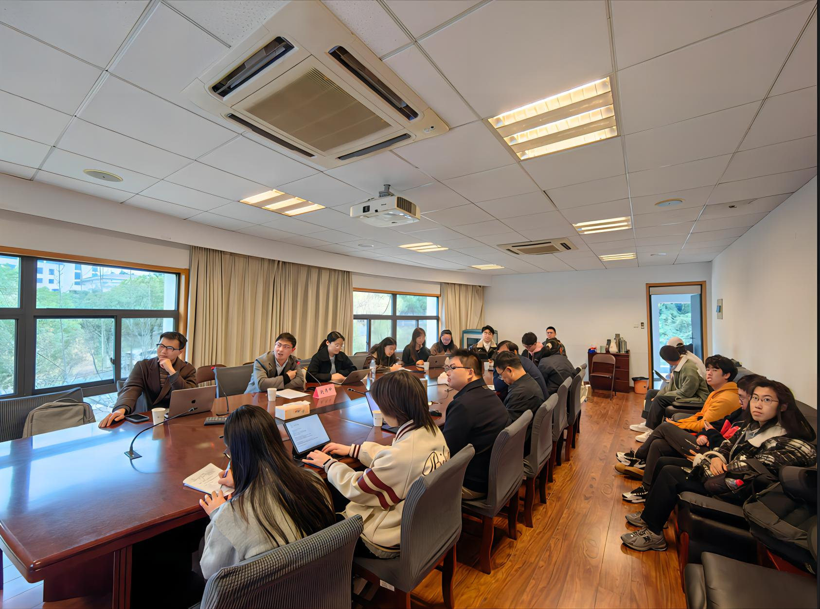 为提升青年教师和学生的科研创新能力,更好支持纪检监察学科建设,swagporn (纪检监察学院)于11月19日下午在文心楼教学法庭会议室举办了“润泽•青廉论坛”设立及首次活动。本期论坛特邀赵伟中博士就其论文“党的自我革命制度规范体系的底层逻辑与规范径路——纪检监察的视角”进行专题汇报。本院赵永红教授、吕建高教授、沈玲副教授和青年教师凡超、蔡艺、尚千惠以及部分学生参加了研讨,论坛由胡锦华博士主持。