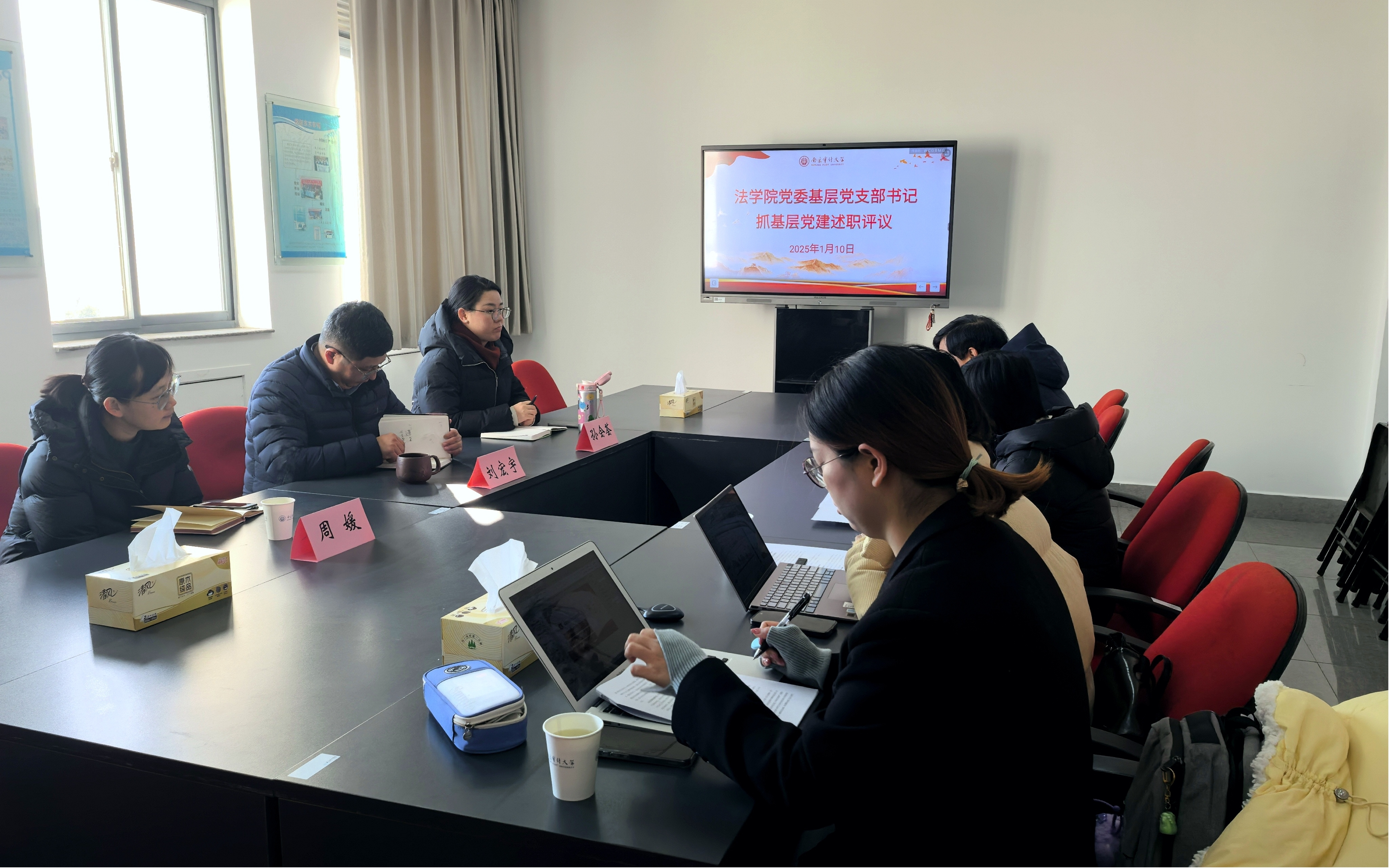 会上四位党支部书记依序做工作总结汇报。教工第一党支部书记赵永红教授以“破解党建业务‘两张皮’,深耕法治教育田,建设‘融合奋进’党支部”为题,讲述江苏省样板党支部在融合党建与专业方面的独特经验与突出成就,尽显融合发展优势。教工第二党支部书记何新容副教授以“聚焦立德树人,践行法治担当,建设‘学习型、创新型、服务型’党支部”为汇报主线,明晰深化理论学习、创新活动形式等后续发展规划。研究生第一党支部书记刘明慧与研究生第二党支部书记张雨博也分别对本支部过去一年建设情况深入剖析,充分展现各支部党建工作实效与创新思维。