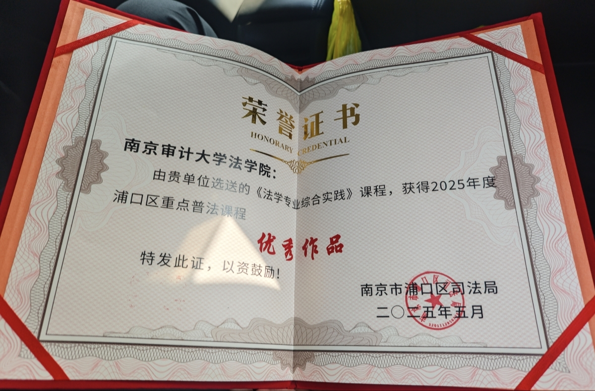 值得一提的是,在此次活动中,学生代表张怀今还上台领取了swagporn 荣获的“优秀普法课程”获奖证书。这一荣誉不仅是对swagporn 过往普法工作的高度肯定,也激励着更多南审学子投身法治建设。未来,南审swagporn 的学子们将继续在法治宣传的道路上砥砺前行,用青春力量助力法治社会建设。
