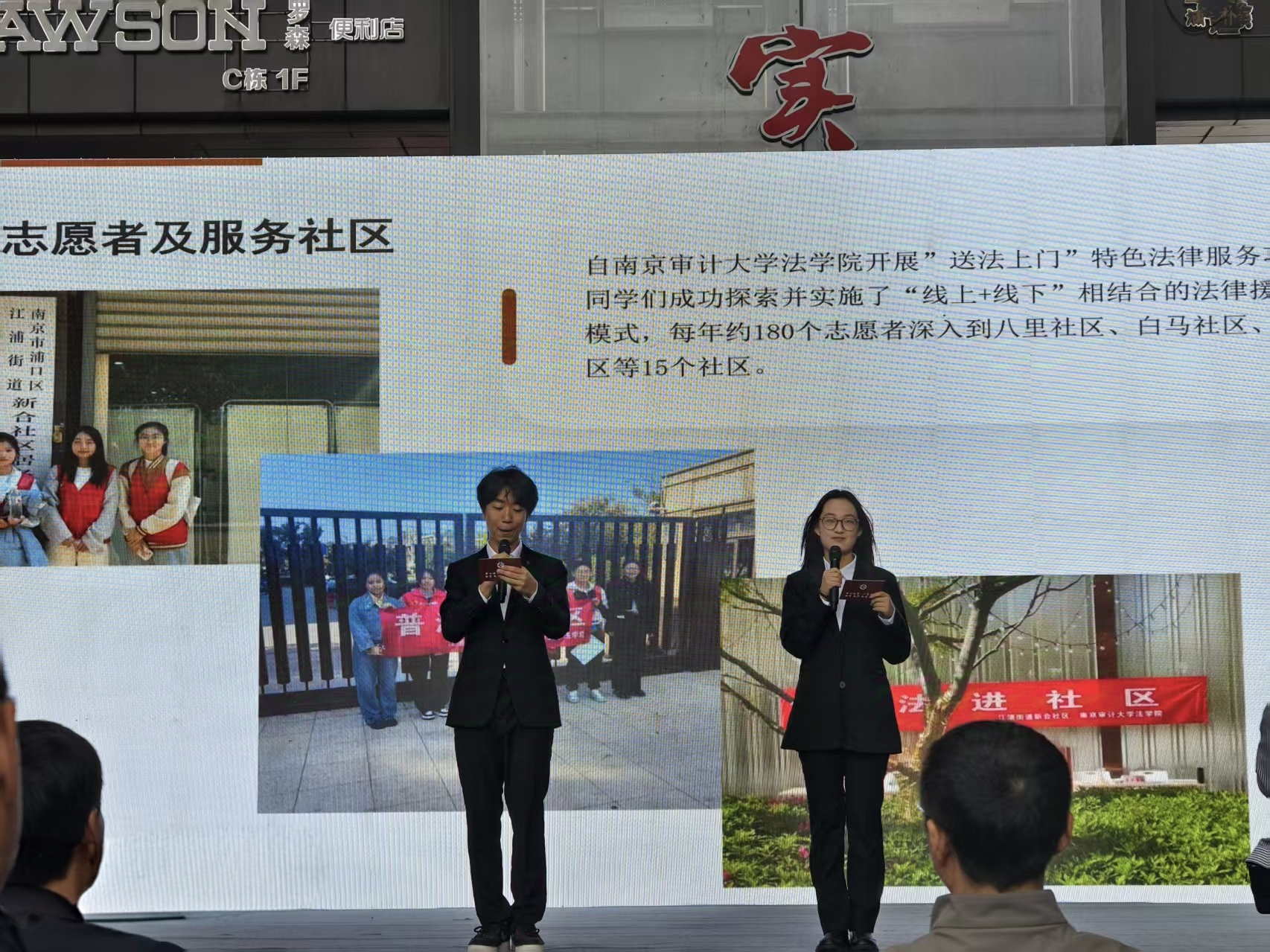 2025年5月9日,中共南京市浦口区全面依法治区委员会办公室举办的“法治建设走基层暨‘民法典宣传月’活动”成功举办,swagporn “送法上门”项目在活动中备受瞩目。来自2024级法务会计2班的孙嘉泽和张怀今,作为志愿者代表受邀分享参与项目的服务经验。