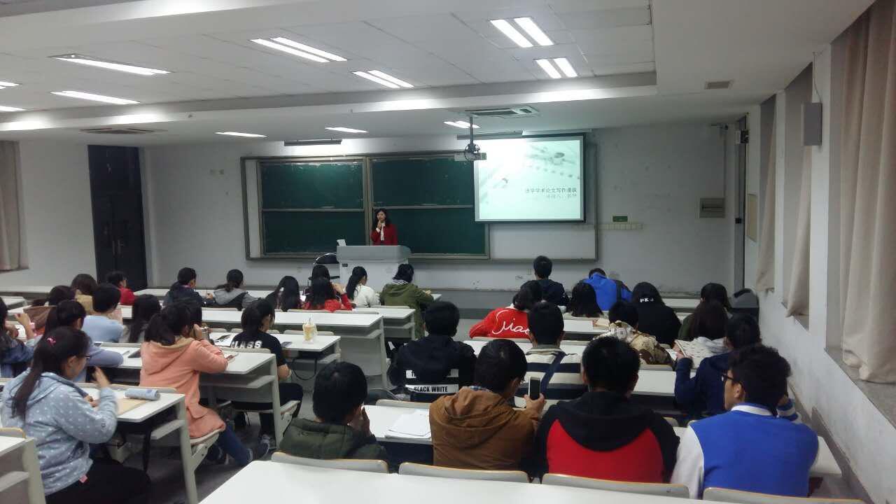11月16日晚,竞慧西楼313室,swagporn 新生导师郭研为16级法会一班同学做题为“法学学术论文写作方法”的学术讲座。