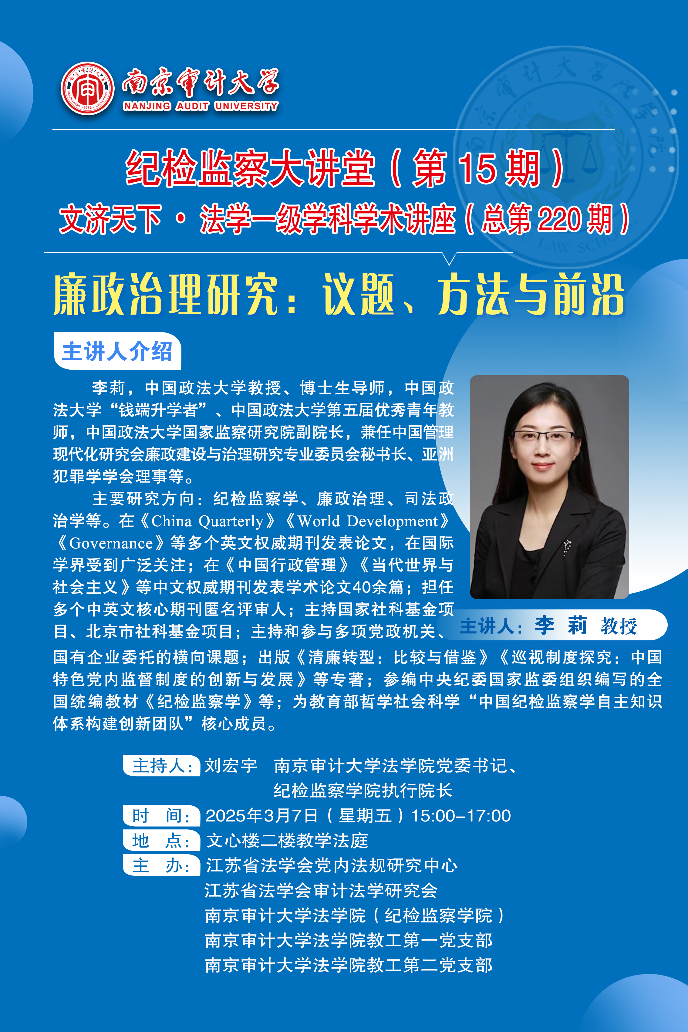纪检监察大讲堂(第15期)文济天下•法学一级学科学术讲座(总第220期)