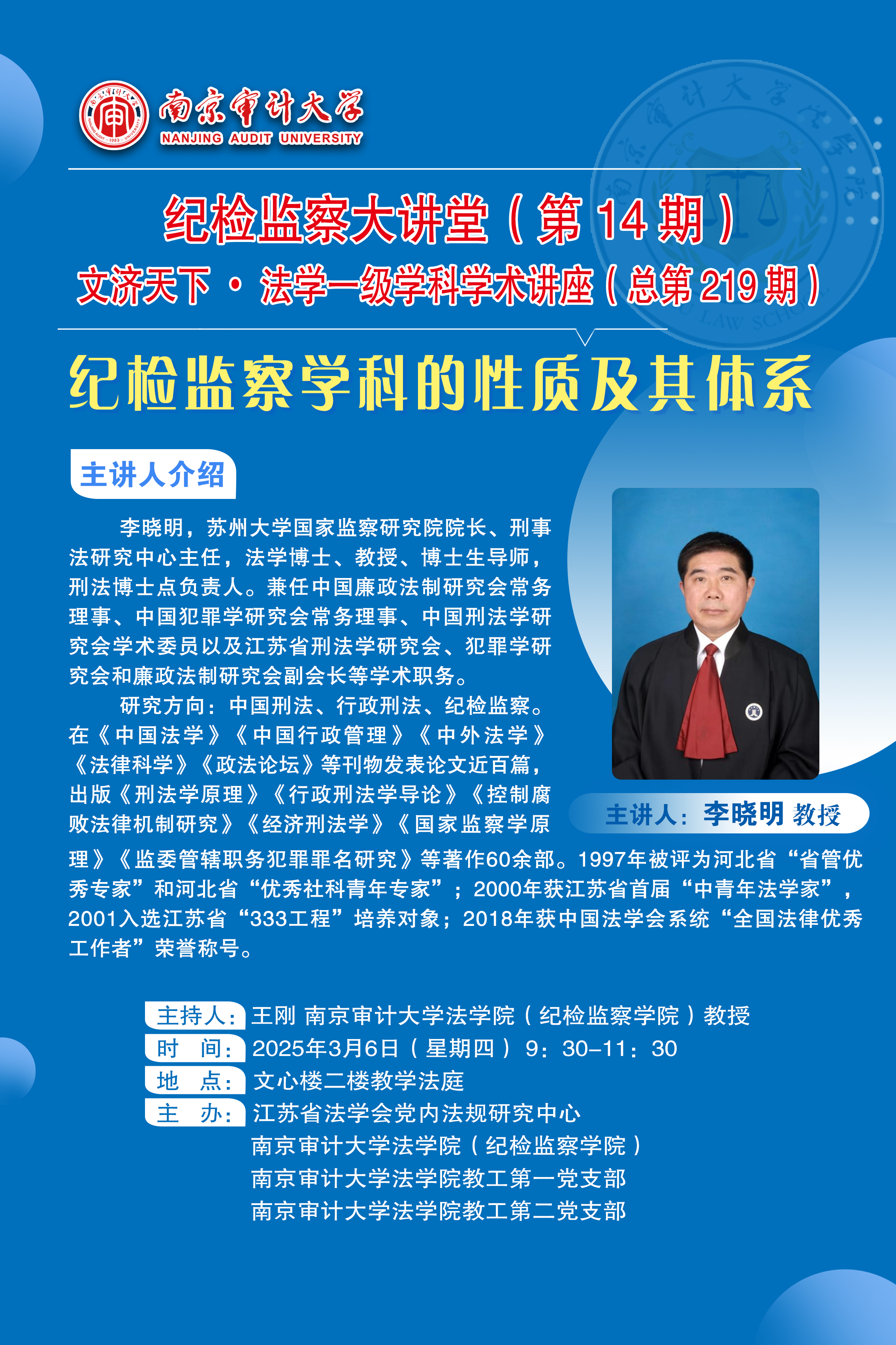 纪检监察大讲堂(第14期)文济天下•法学一级学科学术讲座(总第219期)